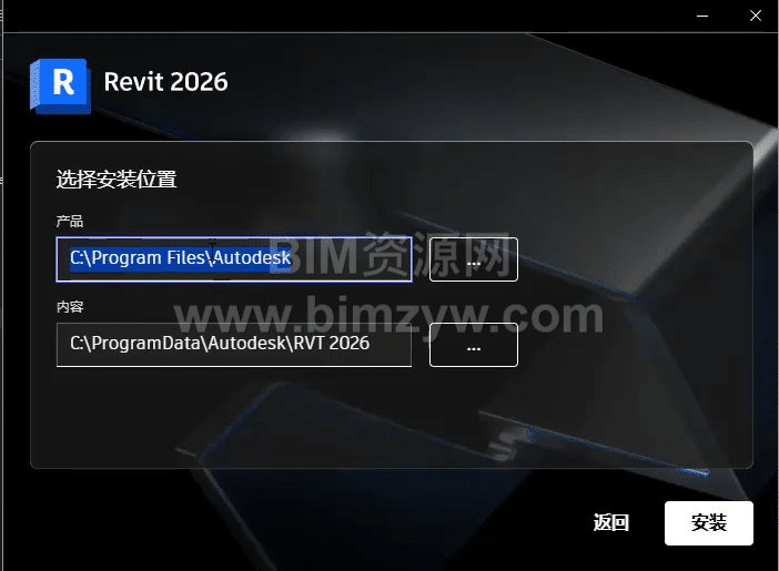 5、这里可以选择Revit2026软件安装位置,建议安装在内存空间比较大的盘中(如 D 盘、E 盘),不要安装到C盘