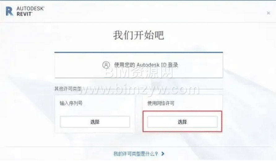 6、回到桌面,找到Revit2022的快捷方式,双击启动软件,当出现下面的窗口时,请选择使用网络许可