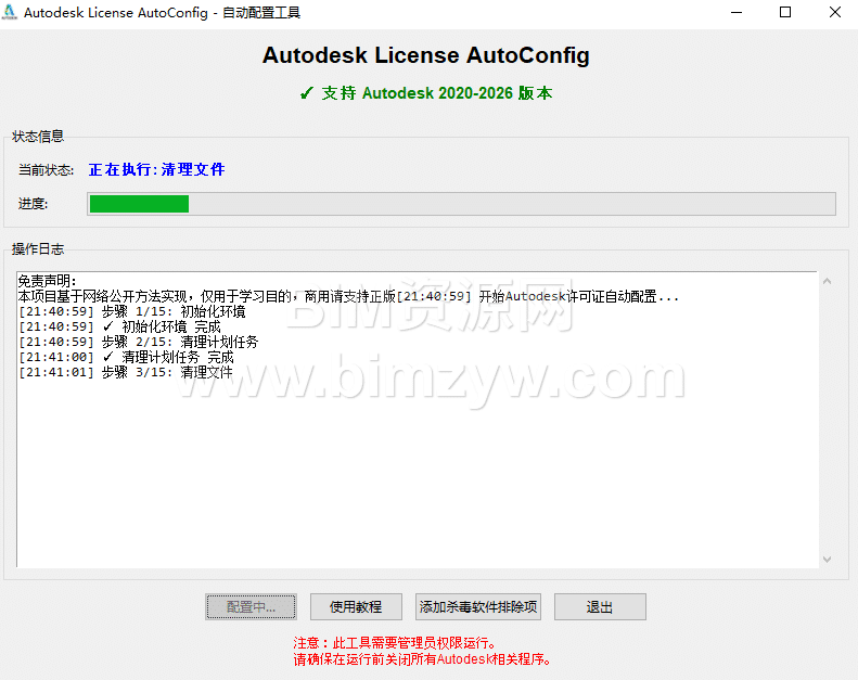 4、工具会自动完成Revit2022后台许可配置,这个过程大概需要1-2分钟