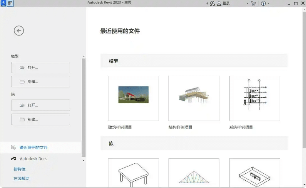 选择 “使用网络许可” 后,若成功进入 “Autodesk Revit 2023 – 主页” 界面,则代表 Revit2022 已成功激活,可正常使用。