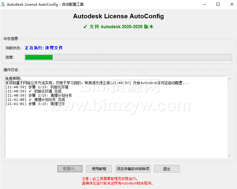 - 首先下载Autodesk License AutoConfig(网络许可自动配置)工具,下载地址:https://www.bimzyw.com/12681.html;