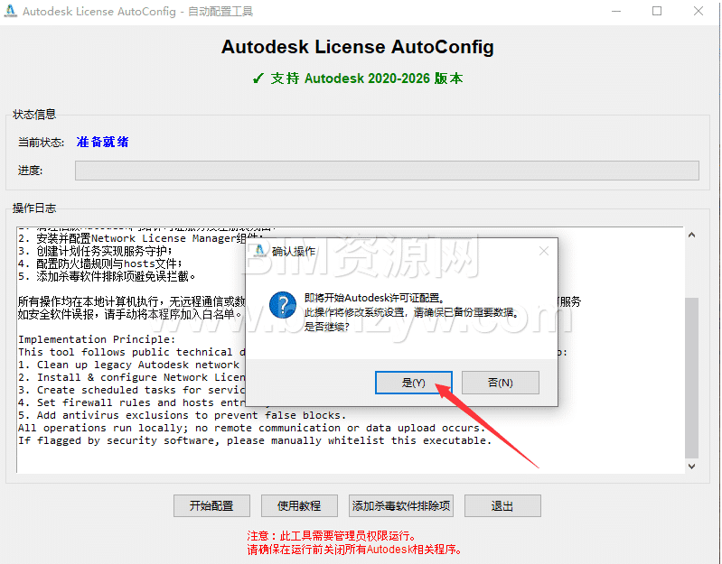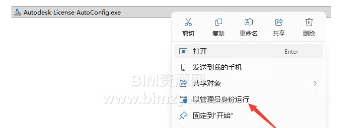 - 右键 “Autodesk License AutoConfig.exe”,选择 “以管理员身份运行”(避免权限不足)。