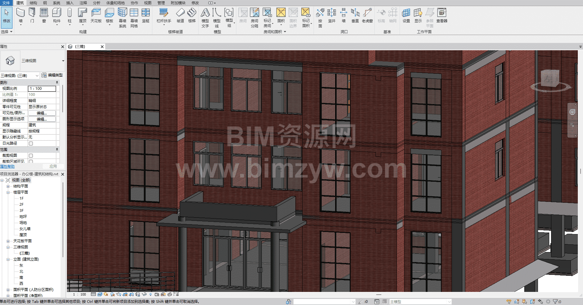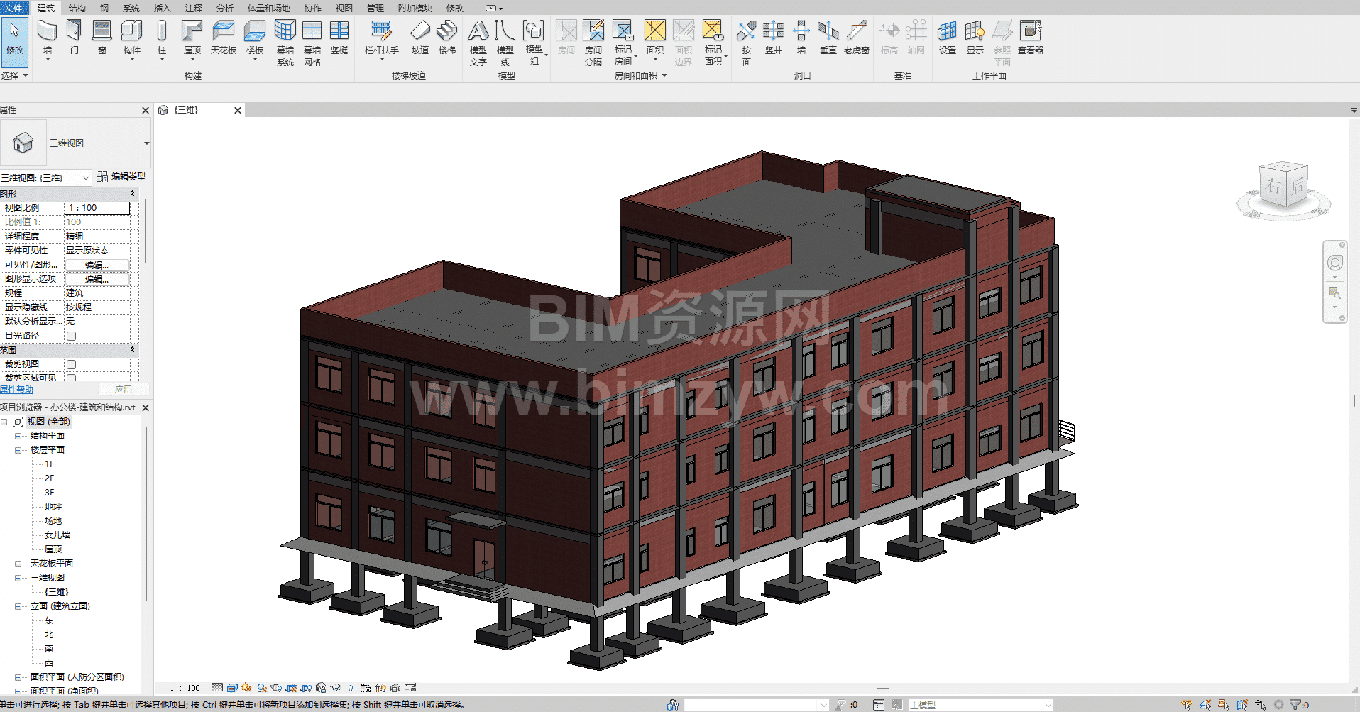 建材公司办公楼BIM模型成品,包含整理好的配套CAD建模图纸,适合新手练习