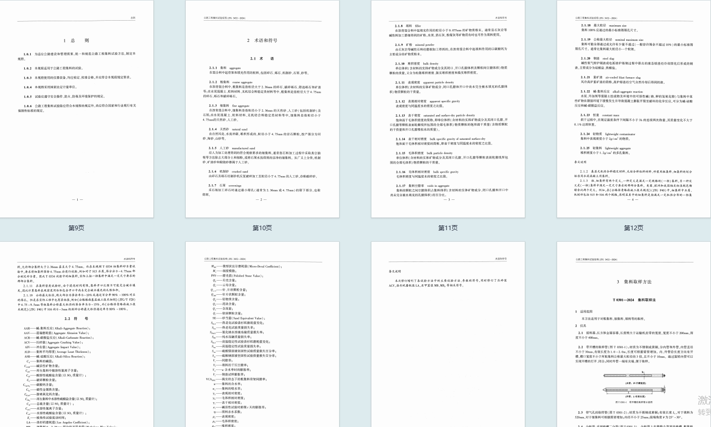 - 集料取样与缩分:新增统一取样方法,明确皮带运输机、料堆、货仓等不同场景的取样流程,规定取样数量及分料器法、四分法等缩分方式,保障样品代表性。