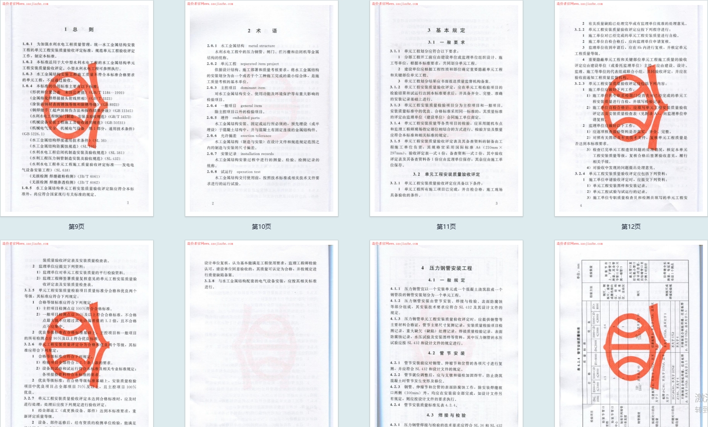 - 标准共 17 章 + 1 个附录,涵盖总则、术语、基本规定及压力钢管、各类闸门、拦污栅、启闭机等水工金属结构的安装验收要求,核心是统一单元工程划分、检验标准、验收程序及质量等级评定规则。