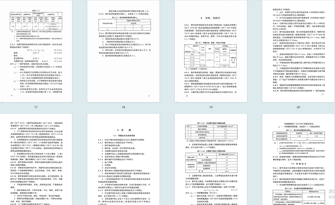 - 关键技术要求:明确脚手架安全等级(分 I、Ⅱ 级)和综合安全系数限值;规定材料与构配件的材质、规格、质量要求(如钢管、型钢、连接件等);划分永久荷载与可变荷载,明确荷载组合与计算方法;确立以概率理论为基础的极限状态设计方法,涵盖承载能力和正常使用极限状态计算;详细规范作业脚手架、支撑脚手架的构造参数(间距、步距、剪刀撑设置等);明确搭设与拆除的顺序、安全要求;制定材料检验、过程校验、完工验收的质量控制流程;提出作业人员资质、荷载控制、恶劣天气防护等安全管理要求。
