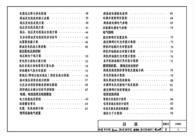 - 核心内容:分十大模块,包括供配电系统(负荷分级、电源方案)、配变电所(设置要求、技术参数)、继电保护与电气测量、自备电源(柴油发电机组方案)、低压配电及控制(干线方式、消防系统控制)、线缆选择与敷设、常用设备电气装置(超高速 / 双轿厢电梯)、电气照明(航空障碍灯、停机坪助航灯)、防雷接地与安全防护、智能化系统(信息设施、建筑设备管理、火灾报警、安防、集成系统)。