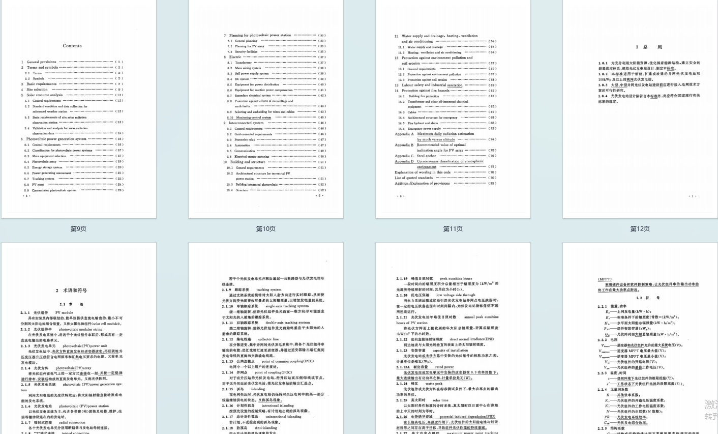 - 作用:为光伏发电站设计提供全流程技术标准,保障工程安全可靠、资源高效利用,适配不同场景(地面 / 水上 / 农光互补)的技术需求。