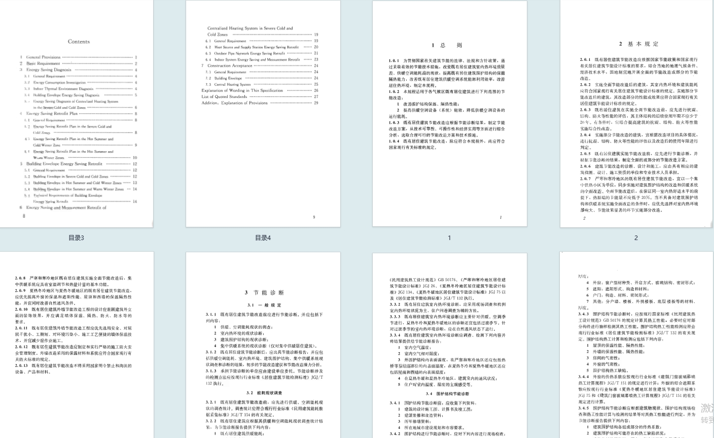 - 新增 “节能诊断” 章节,要求改造前全面调查能耗现状、室内热环境、围护结构及集中供暖系统(严寒和寒冷地区)。