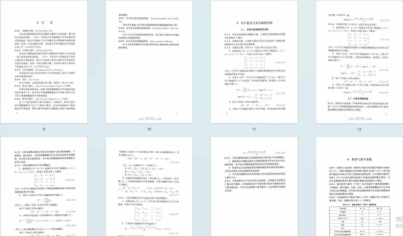 - 计算方法:规定度日数、采暖期、典型气象年的具体计算流程,含数据选取(连续≥10 年观测数据)、处理及平滑方法。