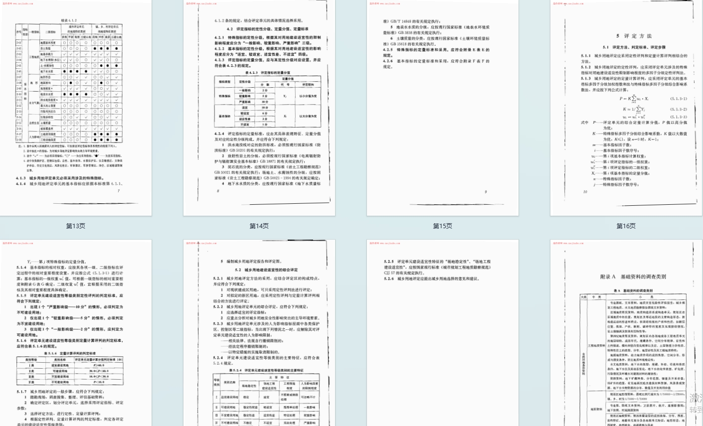 - 评定流程:共 5 个步骤,包括踏勘现场与资料整理、划分评定单元、选择评定方法、判定适宜性等级、编制评定报告与图纸。