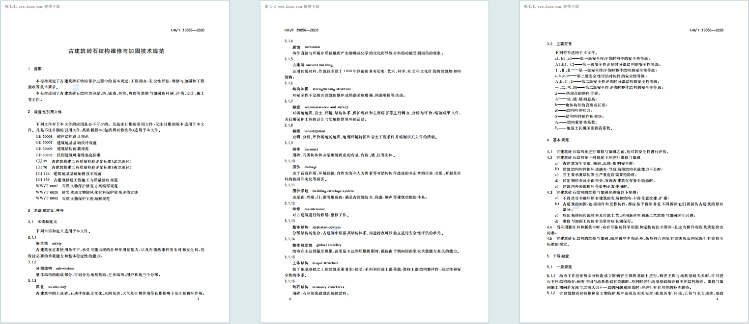 - 适用范围:覆盖古建筑砖石结构的维修与加固全流程,含地基基础、主体结构、围护系统等相关工程。