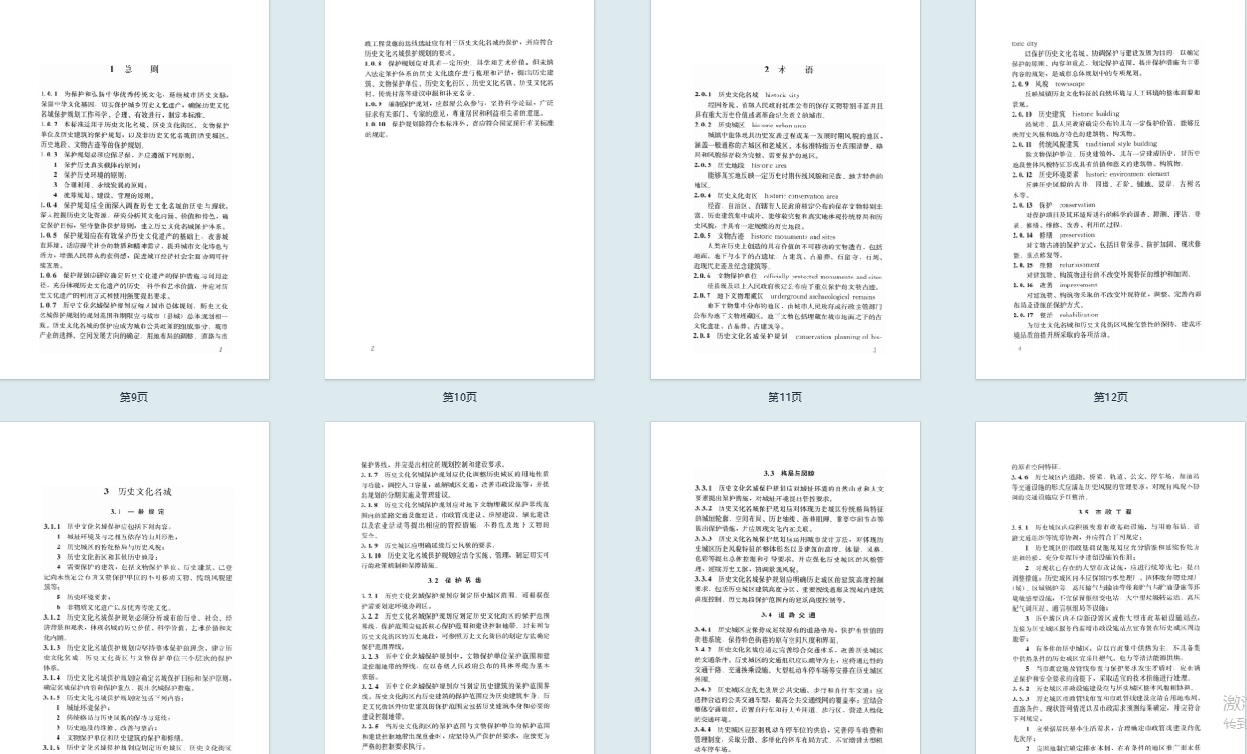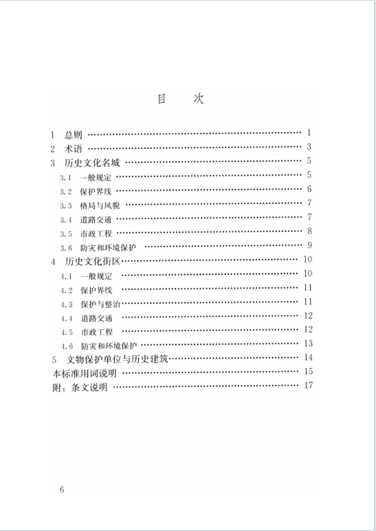 - 主要内容:包括总则、术语、历史文化名城、历史文化街区、文物保护单位与历史建筑 5 大章节,明确各层次保护要求。