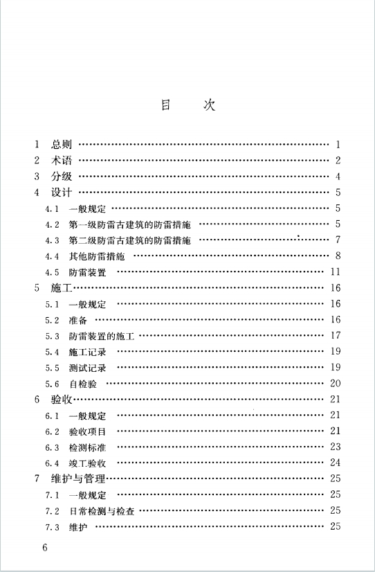 - 主要内容:包括总则、术语、分级、设计、施工、验收、维护与管理 7 大章节,及雷击次数计算、现场勘察、接闪器保护范围等 7 个附录。
