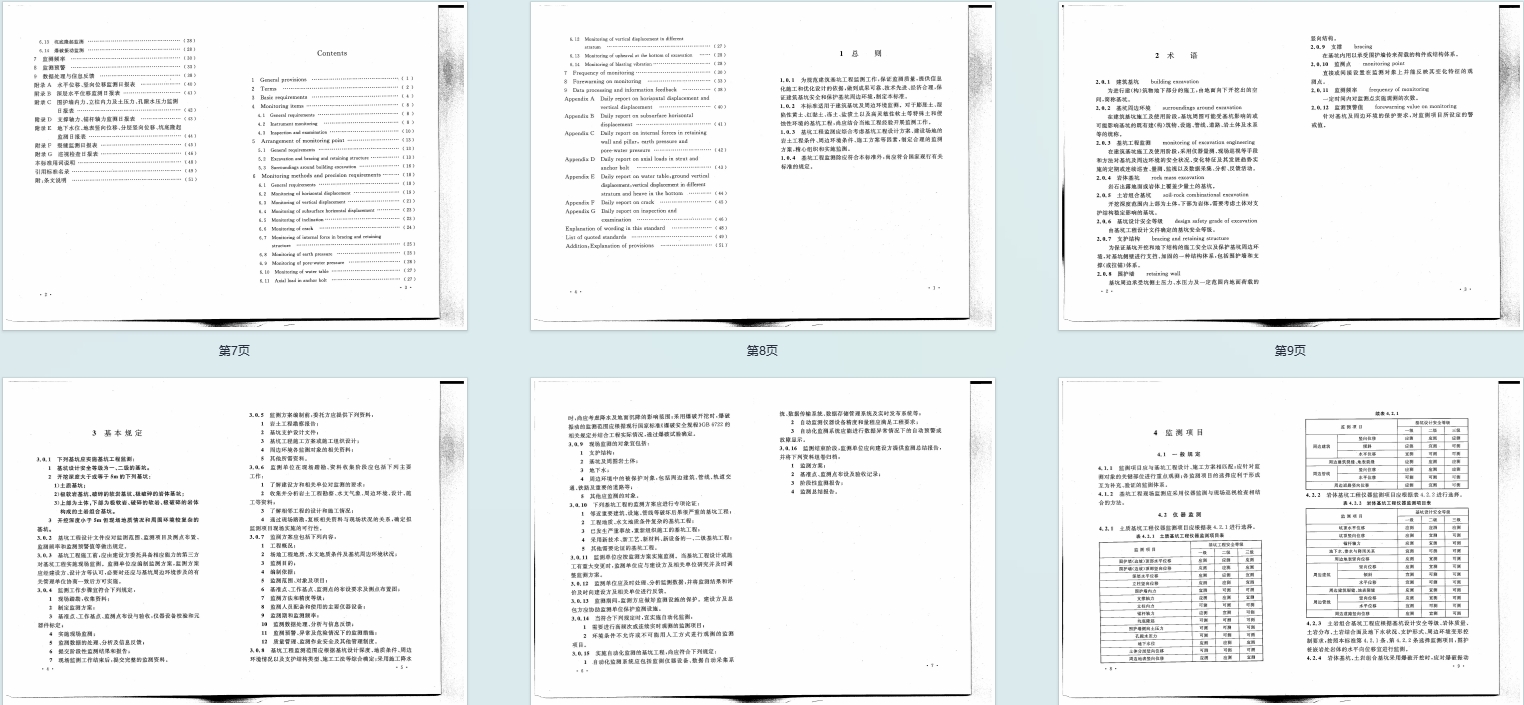 - 适用范围:覆盖常规土质基坑,新增岩体基坑、土岩组合基坑及膨胀土、湿陷性黄土等特殊土基坑监测,还补充了爆破开挖监测要求。