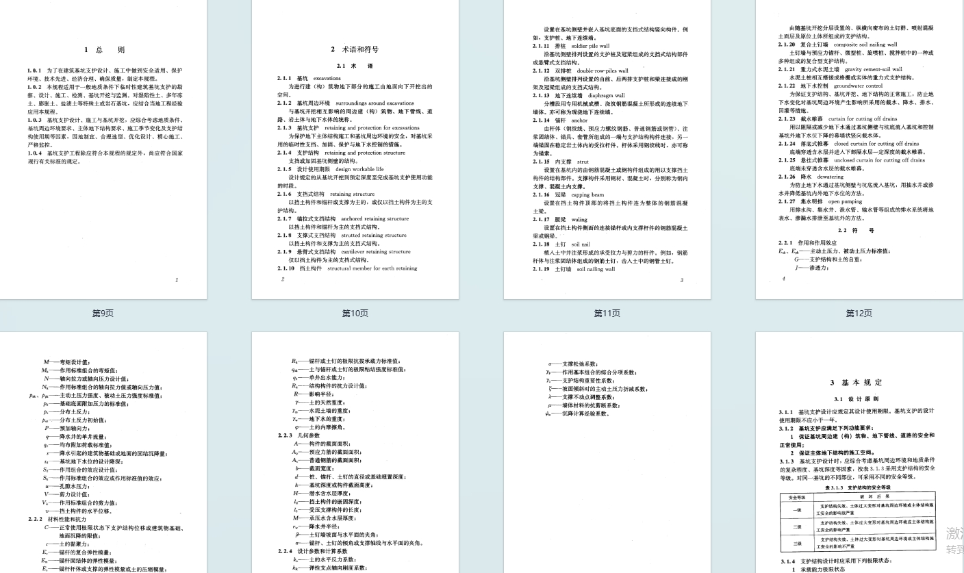 - 修订背景:依据原建设部相关计划修订,吸收了实践经验与国内外先进标准,共包含基本规定、各类支护结构设计施工、地下水控制、基坑开挖与监测等核心内容,新增双排桩、复合土钉墙等支护形式,强调变形控制与地下水资源保护。