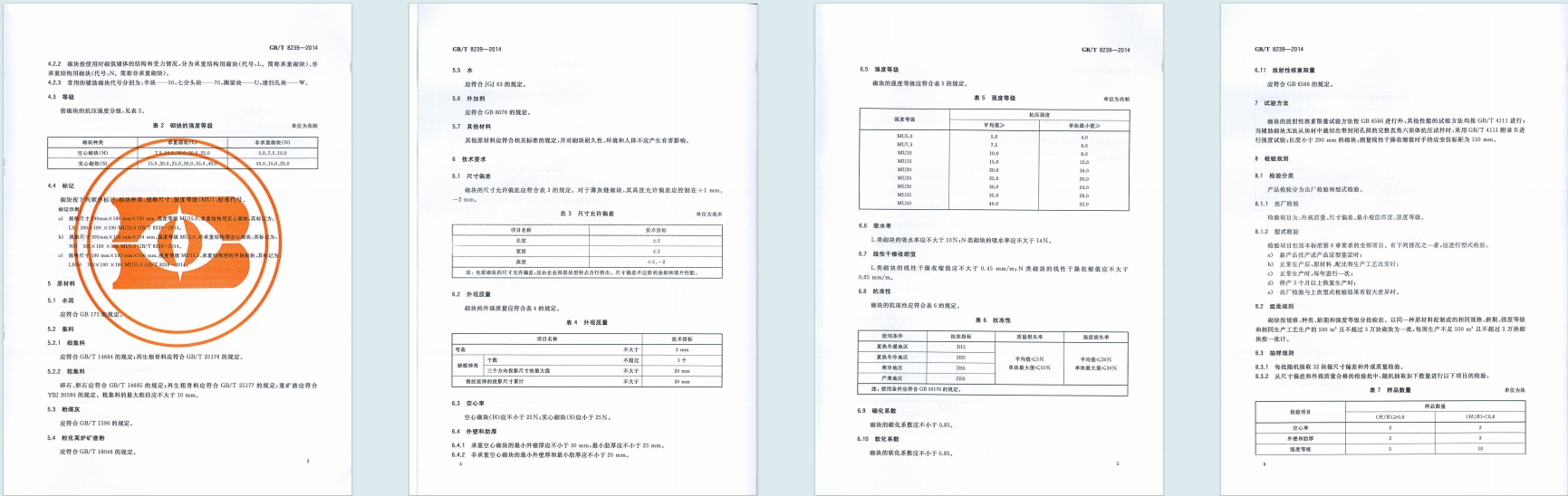 - 取消了原标准 MU3.5 级,新增 MU25 至 MU40 级;承重空心砌块强度等级为 MU7.5-MU25,承重实心砌块为 MU15-MU40,非承重空心砌块为 MU5.0-MU10,非承重实心砌块为 MU10-MU20,且各等级有对应的抗压强度平均值和单块最小值要求。