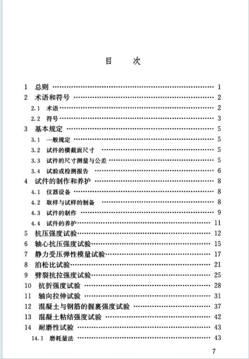 - 新增术语和符号、基本规定章节,完善了原标准中混凝土试件制作养护及抗压、轴心抗压等力学性能试验方法。