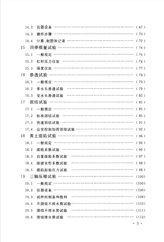 - 力学性质试验:包含击实、承载比、回弹模量、渗透、固结、三轴压缩、无侧限抗压强度、直接剪切等试验,对不同试验的适用土样、操作流程、指标计算有详细规定,如三轴压缩试验分不固结不排水剪、固结不排水剪、固结排水剪三种类型。