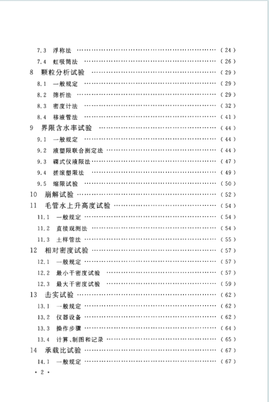 - 修订内容:新增基本规定及崩解试验、毛管水上升高度试验等多项试验方法,完善条文说明,删除土的离心含水当量试验,共包含 69 章和 4 个附录。