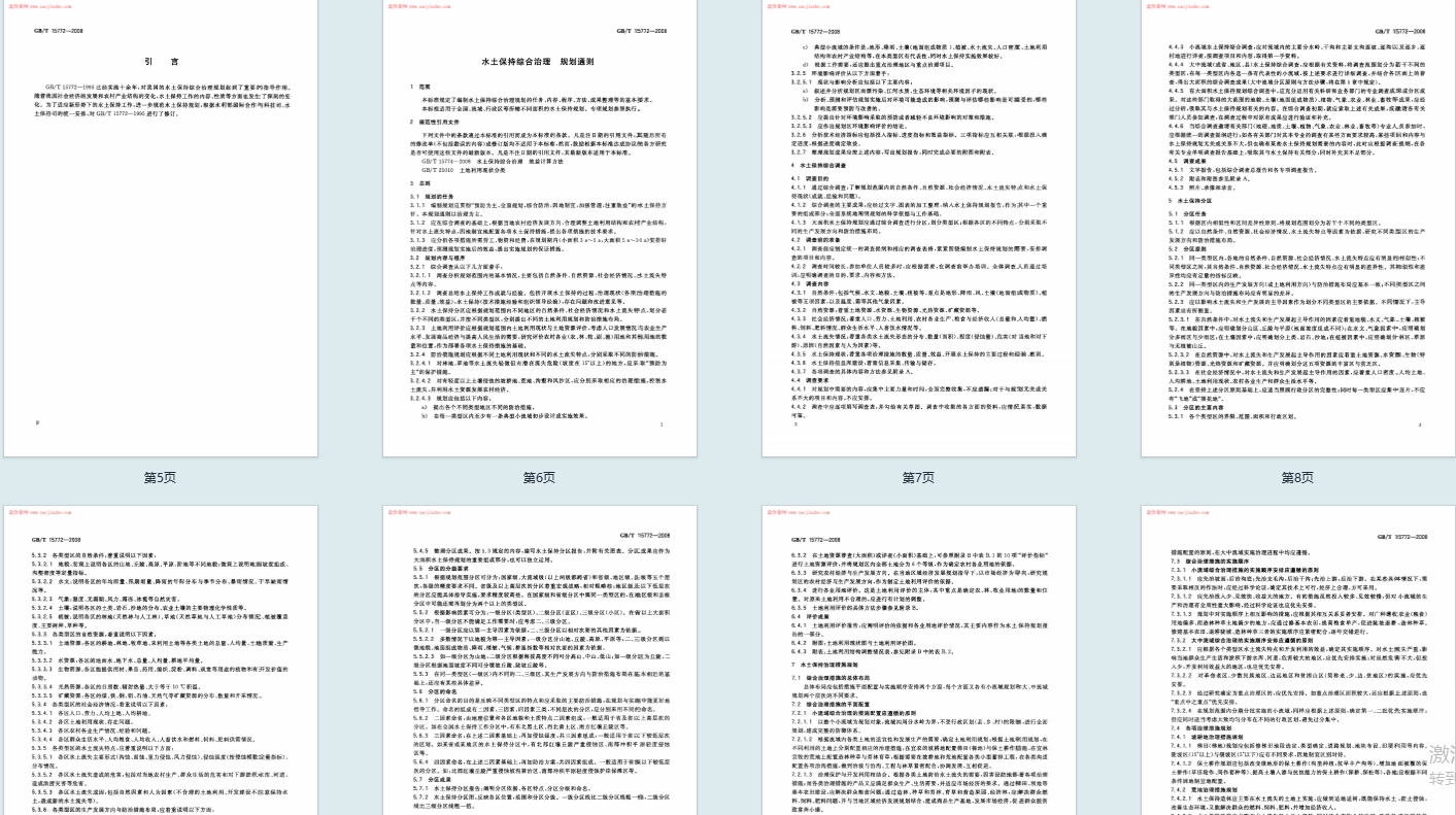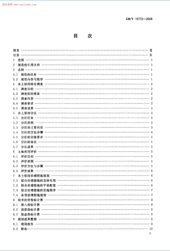 GB/T 15772-2008 于 2008 年 11 月发布、2009 年 2 月实施,替代 GB/T 15772-1995,共 9 章及 5 个资料性附录,是水土保持综合治理规划的国家标准,适用于全国、流域、行政区等不同范围的水土保持规划,专项规划可参照执行,核心内容如下:
