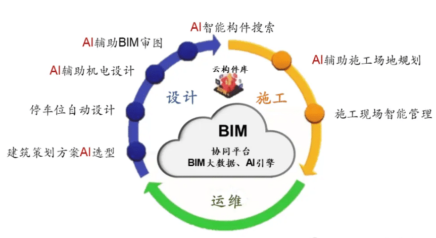 - BIM+AI 协同价值:BIM 竣工模型成为运维数据底座,AI 结合物联网实现建筑性能动态监测。通过分析设备运行数据,AI 可提前预警故障风险,实现预防性维护;BIM + 数字孪生技术构建虚拟建筑镜像,实时映射设备状态、能耗数据,支持运维决策优化。