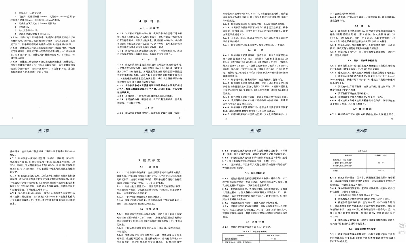 - 原材料:水泥需按批号复验,出厂超 3 个月(快硬水泥超 1 个月)必须复检;砂宜选过筛中砂,含泥量按砂浆强度等级控制;块材(砖、砌块、石材)需符合对应产品标准,钢筋、石灰膏等材料也需满足质量要求。