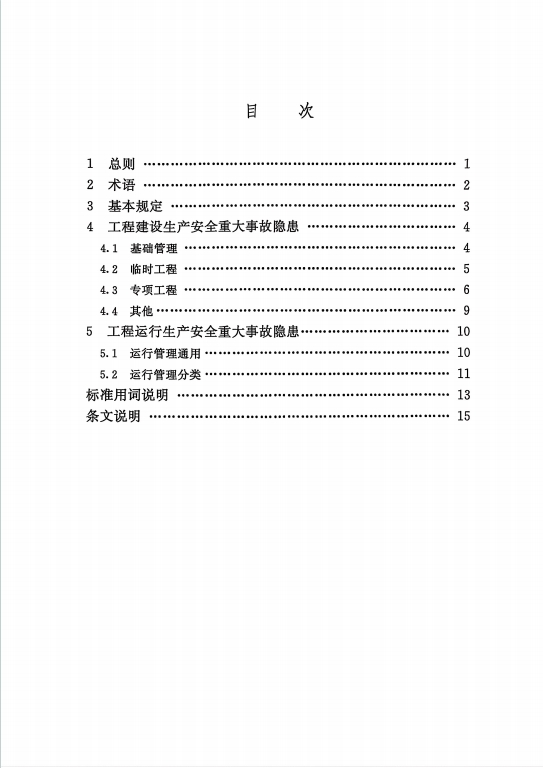 - 工程建设阶段隐患:分为四大类,包括基础管理(勘察设计违规、资质人员不合规、施工方案未审批等)、临时工程(临时设施布置在危险区域、围堰不符合要求等)、专项工程(临时用电、脚手架、边坡基坑、隧洞施工、爆破、起重吊装等违规情形)、其他(通道未设防护棚、设备检修未断电等)。