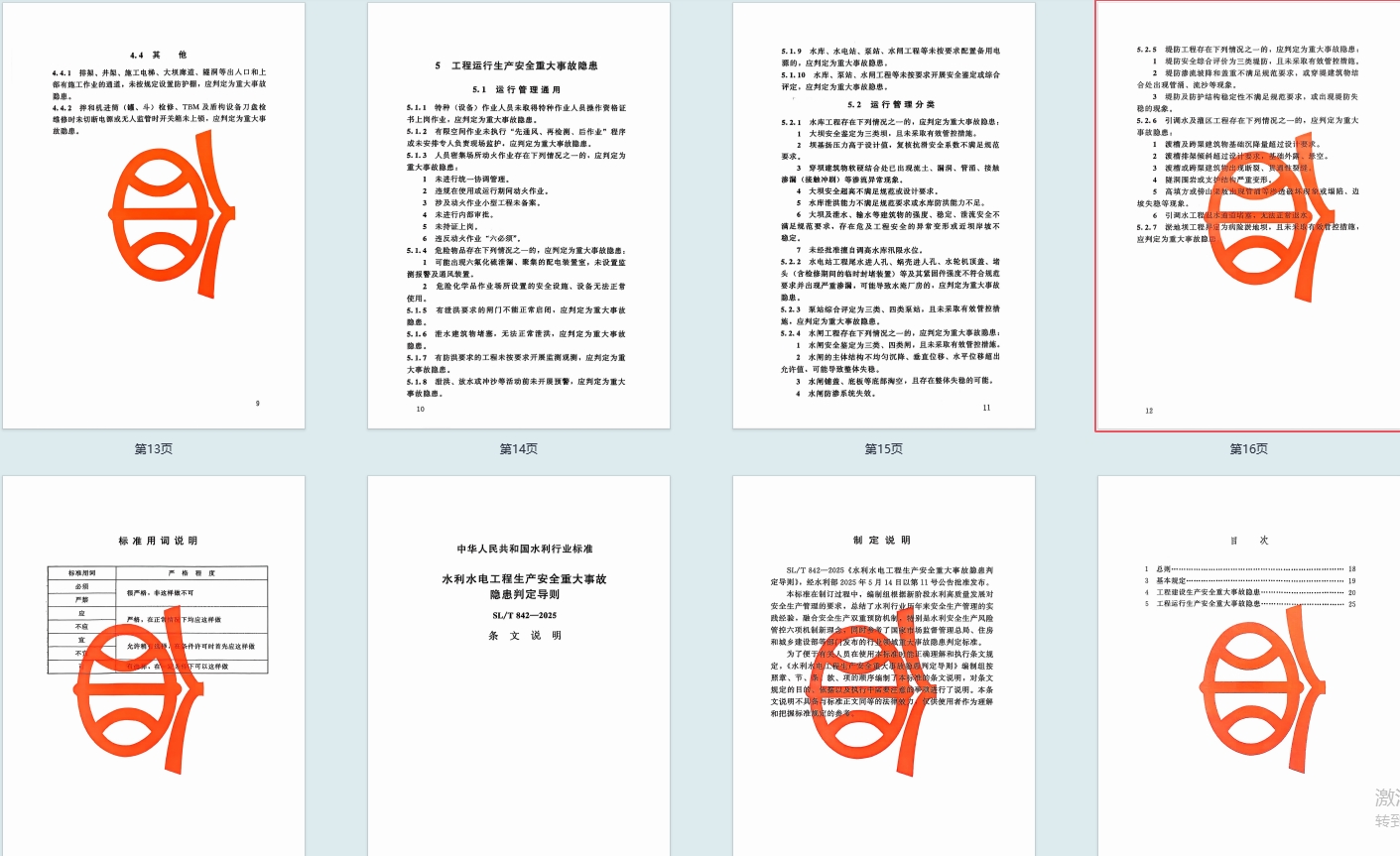 《水利水电工程生产安全重大事故隐患判定导则》(SL/T 842-2025)是 2025 年 8 月 12 日实施的水利行业标准,核心用于规范水利水电工程建设和运行阶段生产安全重大事故隐患的判定标准。