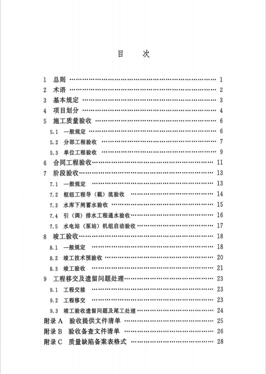 适用于大中型水利水电工程、1-3 级堤防工程的施工质量验收、合同工程验收、阶段验收、专项验收、专业验收及竣工验收全流程,明确各类验收的条件、程序和标准。