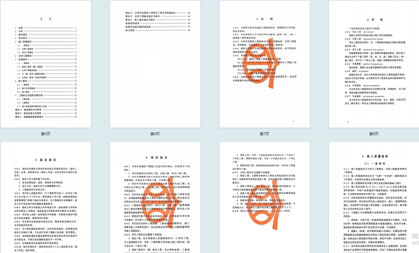 - 基础规定与项目划分:验收结论需经 2/3 以上成员同意,项目按单位工程、分部工程、单元工程三级划分,可增设子单位 / 子分部工程,划分结果需报质量监督机构。