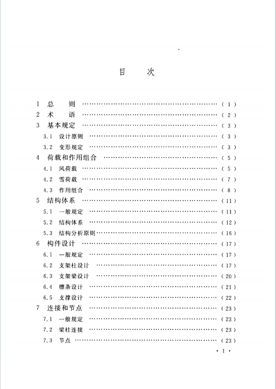 - 核心章节:包含总则、术语、基本规定、荷载和作用组合、结构体系、构件设计、连接和节点、地基基础设计及防腐等关键内容。
