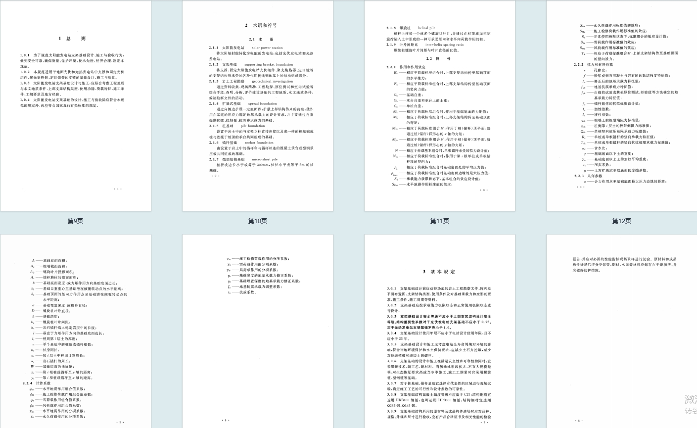 - 适用范围:适用于地面光伏和光热发电站中支撑光伏组件、聚光集热器等的支架基础,涵盖设计、施工及验收全流程。