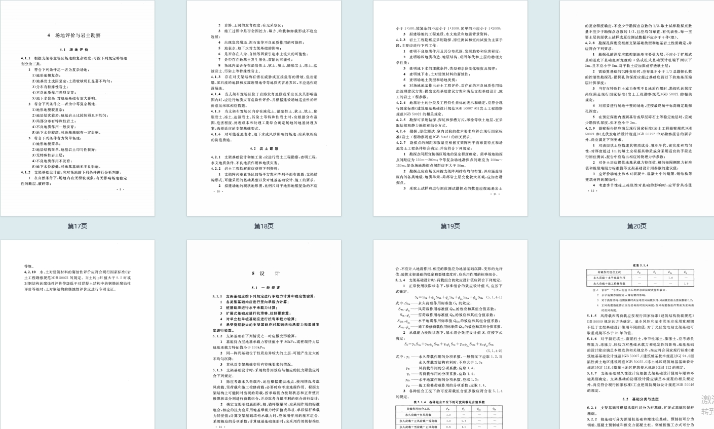 - 场地与勘察:场地分简单、中等复杂、复杂三类,需查明不良地质作用和特殊性岩土;勘探点间距按场地复杂程度确定,深度需控制主要受力层。