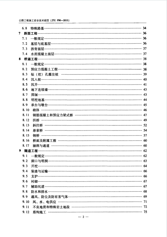 - 主要修订:新增术语、交通安全设施、改扩建工程三章;补充危险源辨识、特种设备管理等要求;细化支架模板、起重吊装等通用作业规范;扩充桥涵、隧道(含盾构、水下隧道)等专项工程安全要求;新增特殊环境施工相关规定。