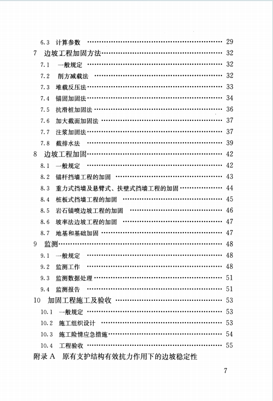 - 加固方法:包含削方减载法、堆载反压法、锚固加固法、抗滑桩加固法等 7 类常用方法,明确各类方法的适用场景、设计要求和施工要点。