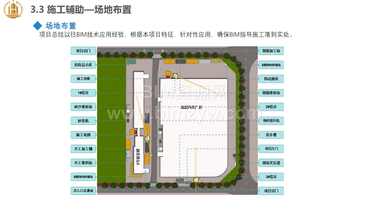 - 场地布置优化:依托企业 CI 族库,依据施工平面图搭建三维场地模型,合理规划设备与材料堆放区、运输路线,减少材料二次搬运,避免环境污染,同时通过可视化技术提升临建质量安全管理水平。