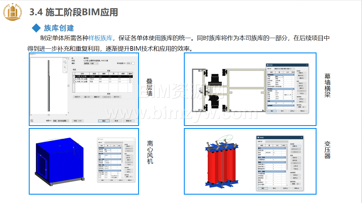 - 族库创建复用:制定单体所需各类样板族库,涵盖幕墙横梁、立柱、电气设备、通风构件等,统一各单体族库标准,为后续项目提供可复用资源,提升 BIM 应用效率。