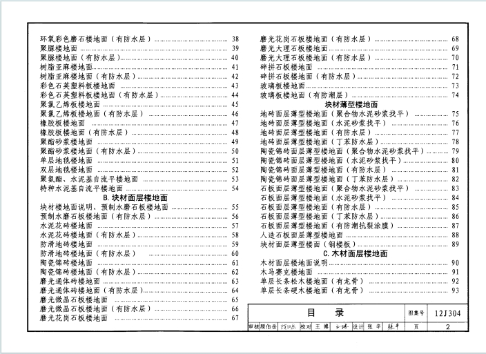 国家建筑标准设计图集,2012 年 6 月 1 日实施,替代原 01J304、01 (03) J304 图集,适用于民用建筑和一般工业建筑的楼地面设计与施工,核心内容如下: