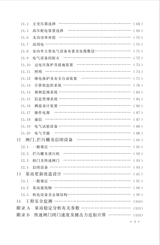 - 更新改造与安全监测:规定泵站更新改造的安全鉴定、参数要求,明确变形、渗流、水位等监测项目与布置原则。
