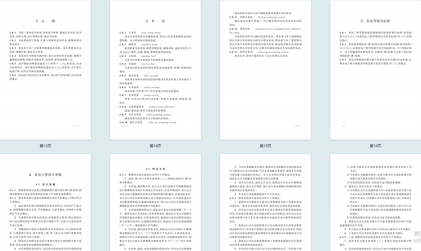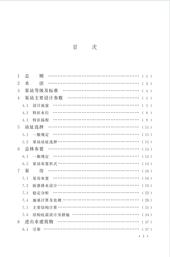 - 基础规定:含总则、术语、泵站等级及标准,明确工程等别、防洪标准、合理使用年限等核心基准。
