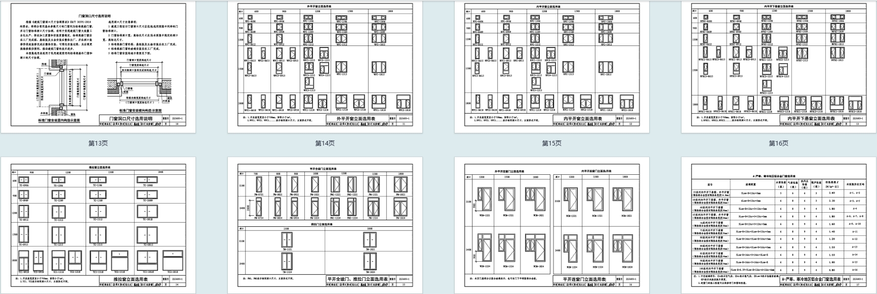 - 门窗类型与系列:涵盖平开窗、推拉窗、耐火窗、连窗门、平开门、推拉门等,按框厚构造尺寸划分 50 系列至 170 系列,适配不同气候区。