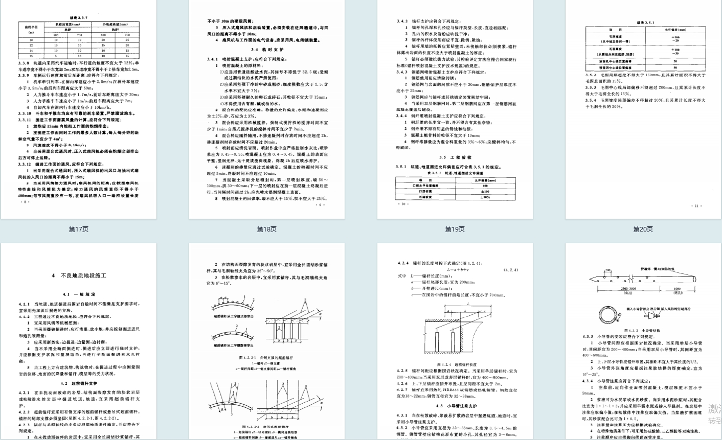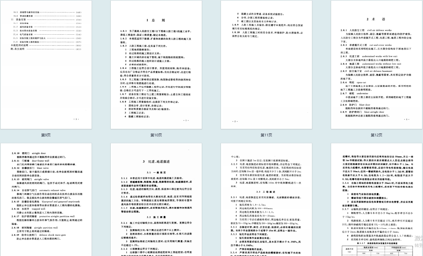 - 基础构成:包含总则、术语、11 大核心施工章节及条文说明,其中 70 条强制性条文需严格执行,覆盖坑道掘进、钢筋混凝土施工、孔口防护、设备安装等全流程。
