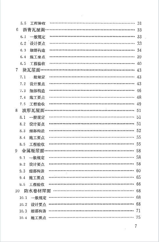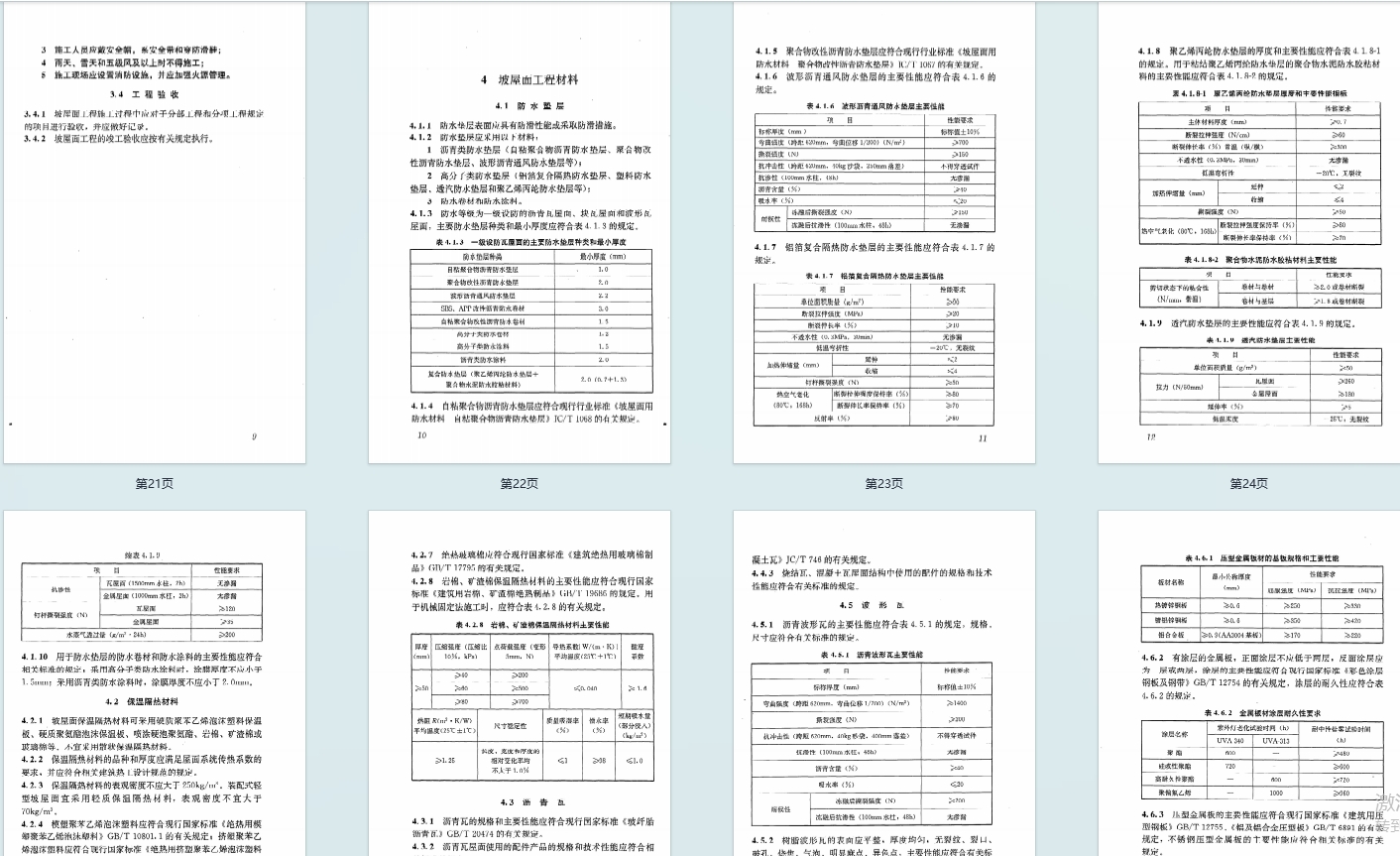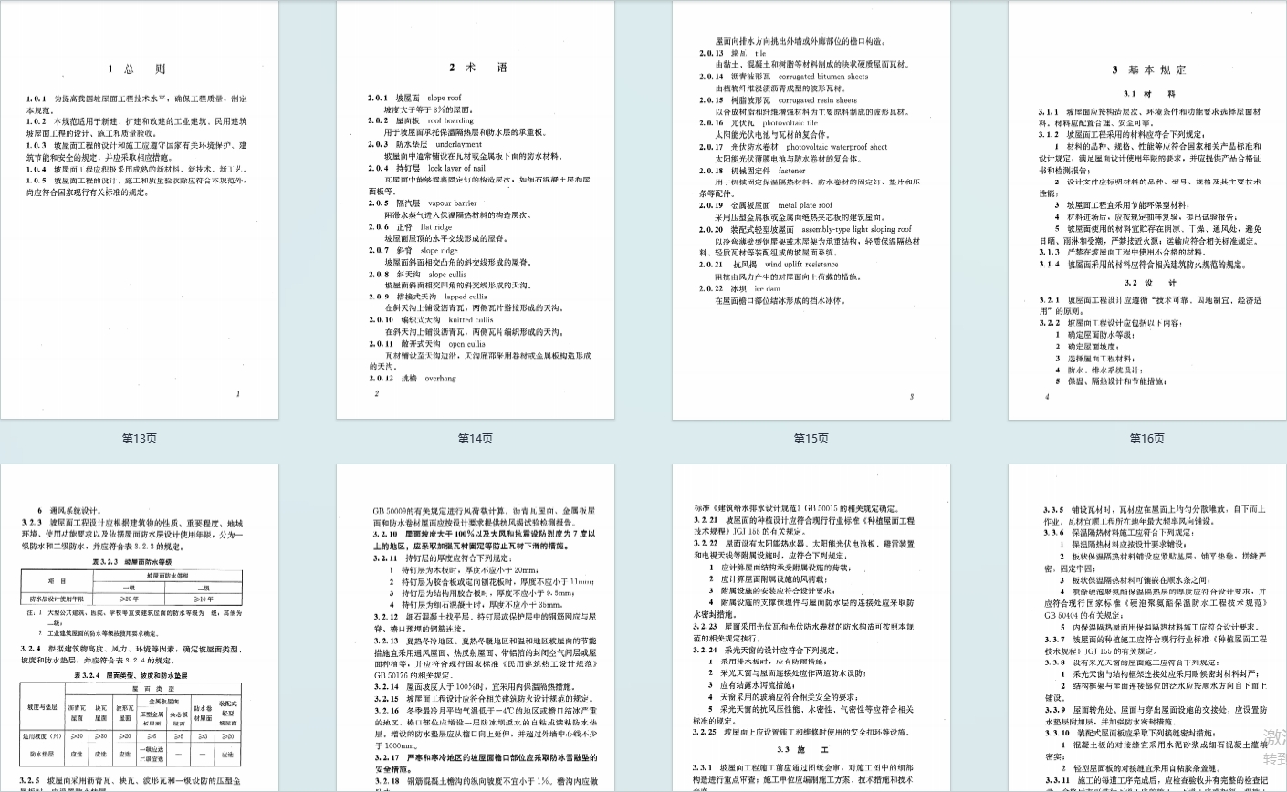 - 材料要求:涵盖防水垫层、保温隔热材料、瓦材(沥青瓦、块瓦、波形瓦)、金属板、防水卷材等核心材料的性能指标,明确机械固定件、顺水条等配套材料的防腐、规格要求。