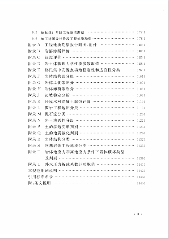 包含岩溶渗漏评价、浸没评价、岩土体物理力学参数取值、围岩分类、泥石流分类等 19 个附录,为勘察评价提供具体
