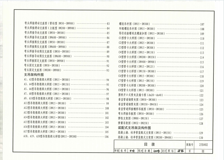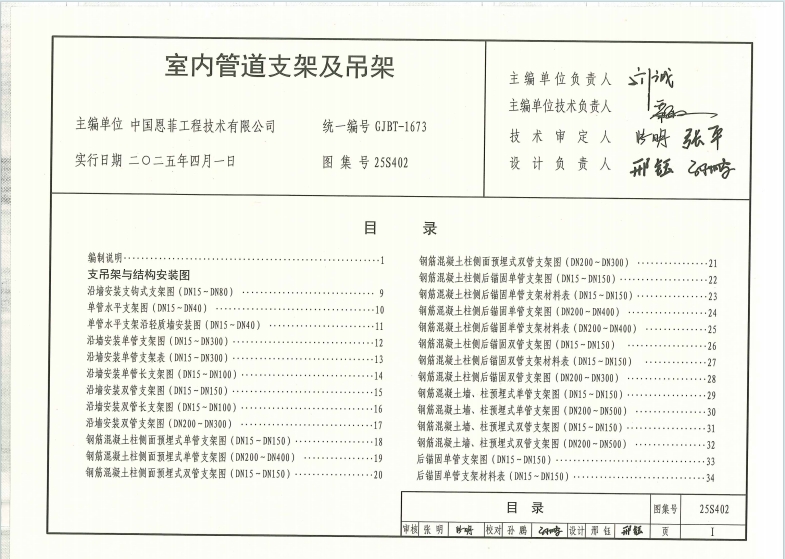 25S402《室内管道支架及吊架》是国家建筑标准设计图集,适用于民用与一般工业建筑室内给排水管道(含地沟、地下管廊内参考使用),核心规范管道支架及吊架的设计选用、安装与构造要求。