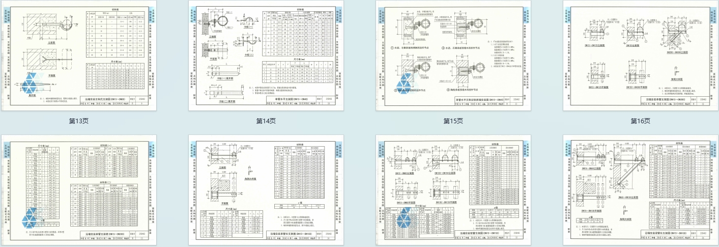 - 技术参数详实,含大量尺寸表、材料表、节点详图,可直接指导设计选型、施工安装与工程量核算,兼顾实用性与规范性。
