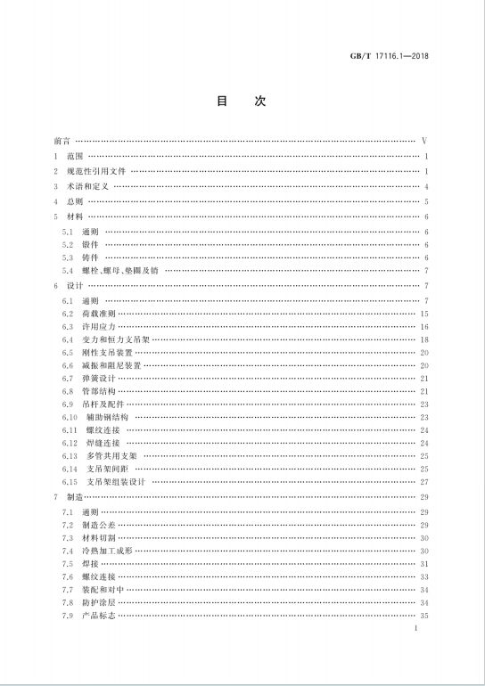 GB/T17116.1-2018《管道支吊架 第 1 部分:技术规范》是管道支吊架系列标准的核心技术依据,规定了圆截面金属管道支吊架从材料、设计、制造到安装、试验、检验、维修的全流程基本要求,替代 1997 版并完善多项技术内容。
