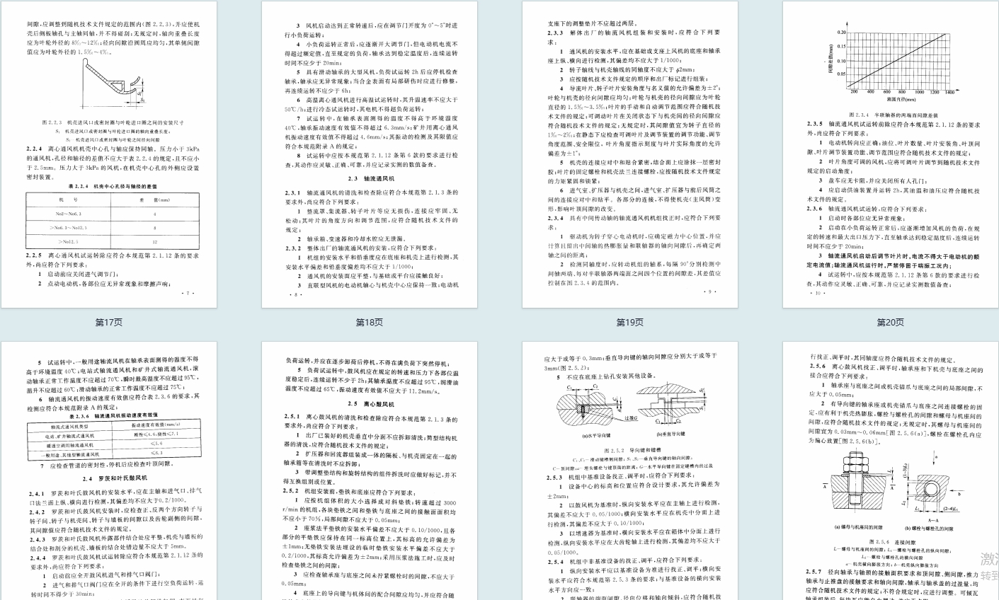- 风机:明确各类风机的找正调平精度、叶轮与机壳间隙、试运转负荷及振动限值,防爆和消防排烟风机需满足特殊安全间隙与防护要求。