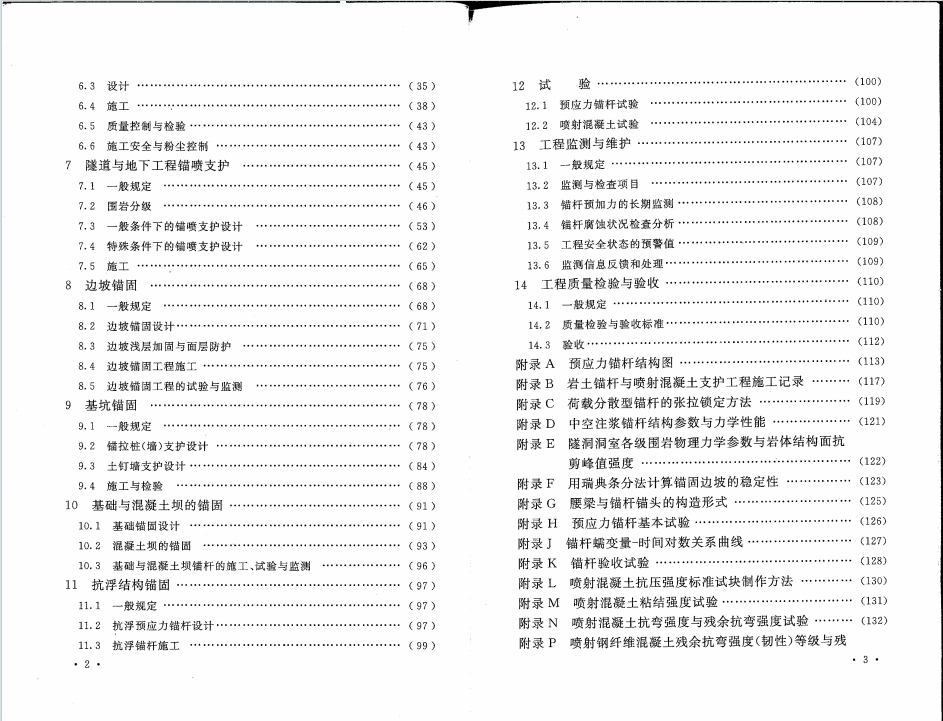 - 涵盖隧道与地下工程、边坡锚固、基坑锚固(锚拉桩 / 土钉墙)、基础与混凝土坝锚固、抗浮结构锚固等专项设计与施工要求。